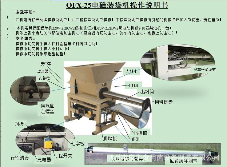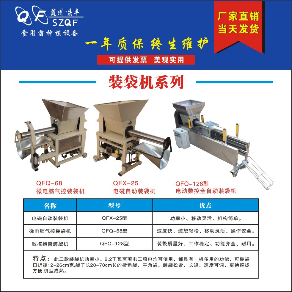 | 规格 | QFX-25 | 型号 | 单轴电磁装袋机,单轴电磁装袋机+电机,双轴电磁装袋机,双轴电磁装袋机+电机 | 适用范围 | 食用菌种植 |
