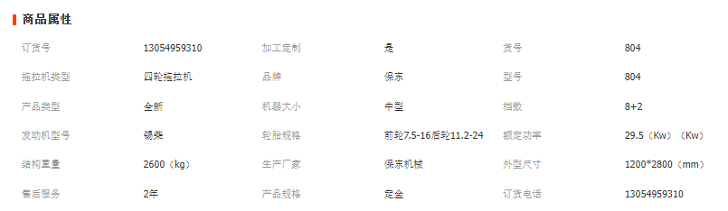 山东保东机械有限公司是拖拉机等产品生产加工的公司,有完整、科学的质量管理体系。山东保东机械有限公司的诚信、实力和产品质量获得业界的认同。欢迎各界朋友莅临参观、指导和业务洽谈。
