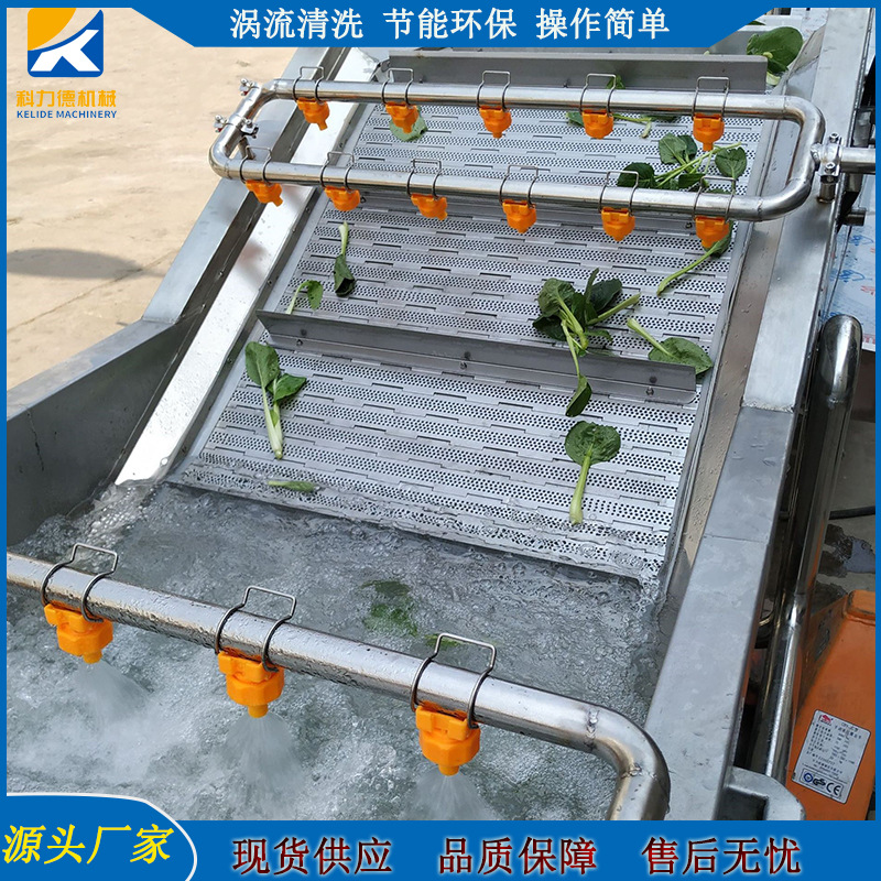 该款喷淋式气泡清洗机采用气泡冲击波原理能够将蔬菜瓜果表面冲洗干净,提高工作效率,采用较先进的水处理系统对清洗水进行消毒处理,有效的杀灭有害细菌,分解残留农药;本机设有隔菜板,将清洗物与洗下的泥沙有效隔离开,降低了水的浑浊度,大幅提高了清洗水循环利用率,可节约用水,节省了人力;操作方便,省时省力,能耗低,卫生、安全、效率高。
