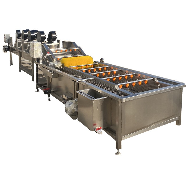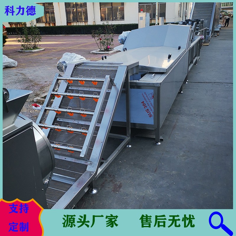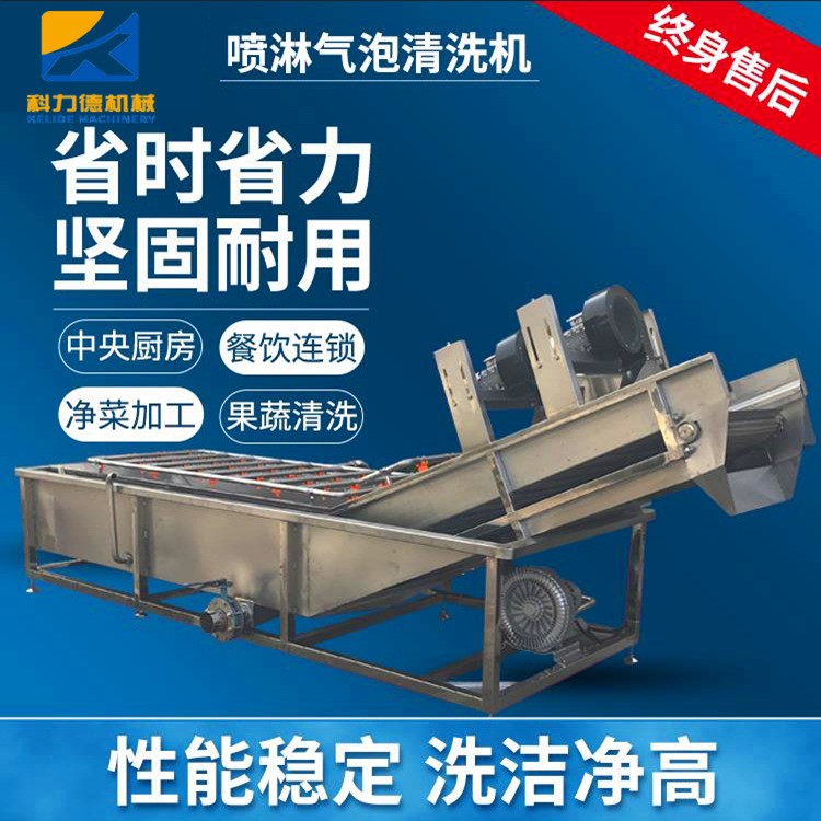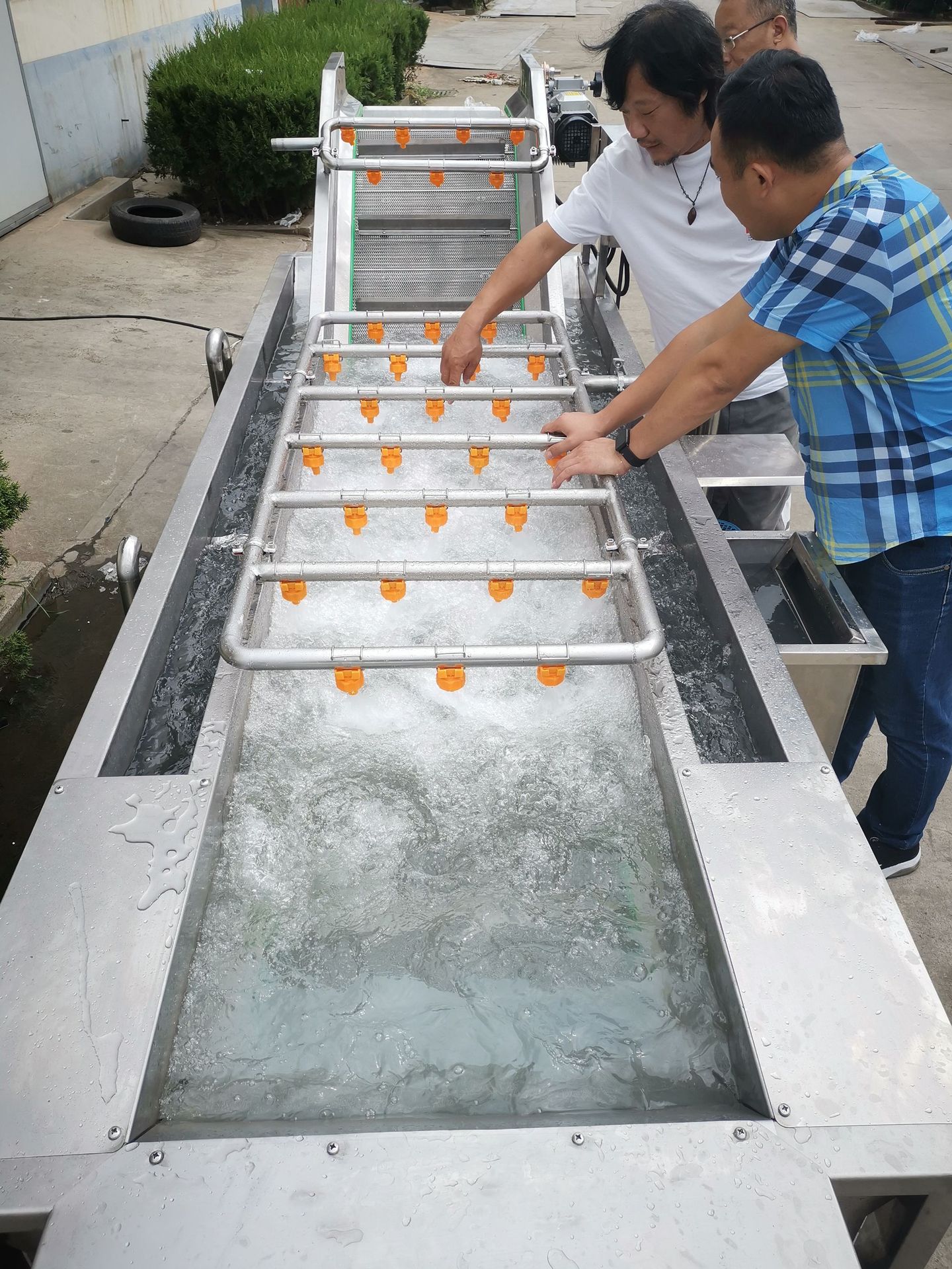 大型果蔬气泡清洗流水线采用汽泡清洗,适用于蔬菜、水果、水产品等颗粒状、叶状、根茎类产品清洗、浸泡。