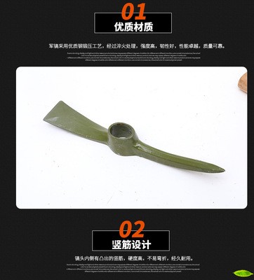 | 适用范围 | 土木户外部队探险 | 单品重量 | 2 | 尺寸 | 镐头长38cm,木柄长59cm |