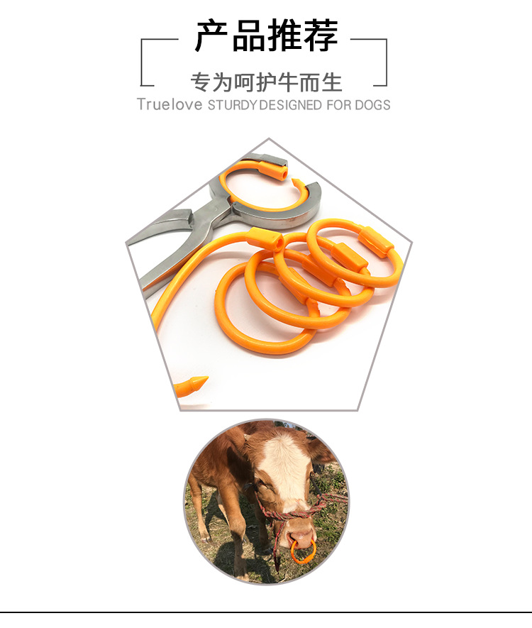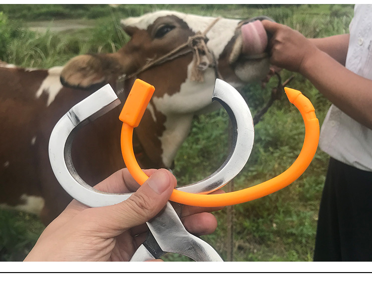 1、在安装的时候把牛固定好,头不能动,安装的时候一定要一气呵成,如果牛往前一冲,就会把鼻环尖端冲弯,安装后看上去是好,其实卡勾没有勾住,用不了多久就松了!