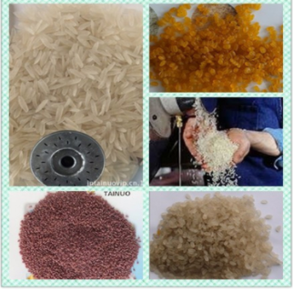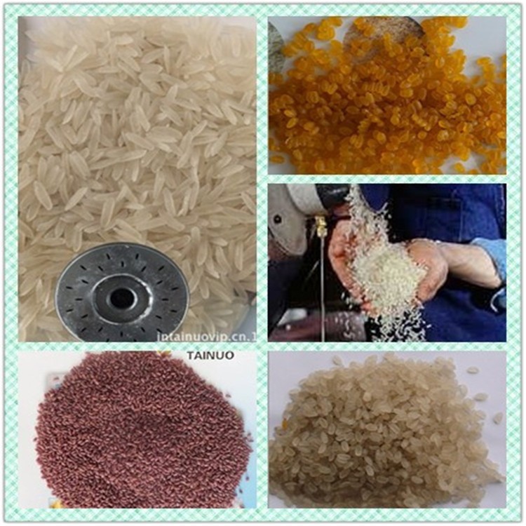它是以杂粮生料、瓜果蔬菜类含水生料、米、魔芋粉为主要原料,经膨化、粉碎、搅拌、熟化制粒、人造米烘干制成。人造米制作成本低,易加工制作,成品质量好,淀粉含量低,营养丰富,成品外形光滑美观,色彩多样化,成品粘结性能好,口感柔和,不易老化,既可直接食用,也可供人们按大米的特点加工食用。