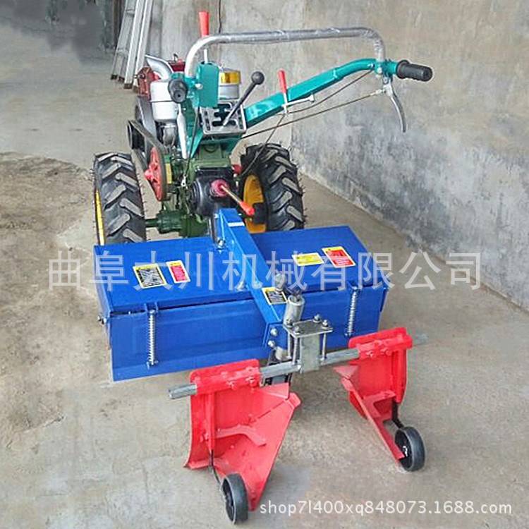 手扶拖拉机配上相应的农机具,可进行多种农业作业,还可以作为各种固定作业的动力。以下我们介绍几种常用农机具的挂接。一般旱地和运输作业时,使用橡胶轮胎。在水田和湿地作业时,为了防止轮胎打滑和下陷,应使用铁轮。安装水田轮时,先将离合器手柄拉到制动位置。用千斤顶撑起拖拉机。拆下橡胶轮胎。将轮毂装在水田轮上。将轮毂上的槽与轮轴上的键对齐,将水田轮推到位。最后拧紧4个螺母。注意,左右铁轮不能装反。