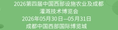 | 2026第四届中国西部设施农业及成都灌溉技术博览会 | 2026-05-30~2026-05-31 | 成都 | 距离开幕176天 |