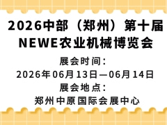 展会概况2026年6月13日至14日,中部(郑州)第十届NEWE农业机械暨零部件展览会将在郑州中原国际会展中心(航空港)隆重举行。作为中部六省农业机械化领域的标杆性盛会,本届展会以“科技赋能现代农业,匠心铸就农机精品”为主题,聚焦农业现代化进程中的智能化、绿色化与高端化转型,致力于打造集产品展示、技术交流、商贸洽谈于一体的综合性平台。