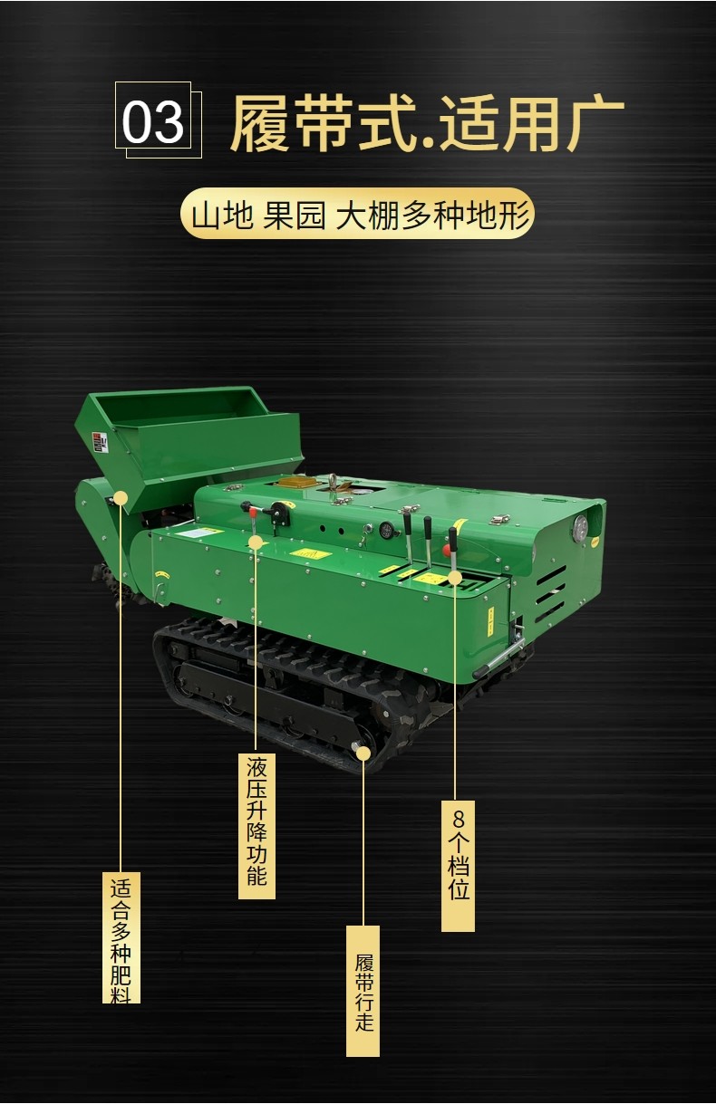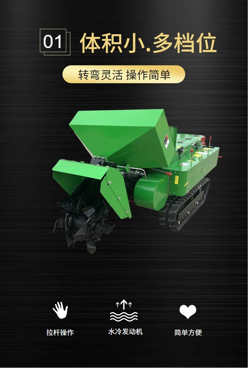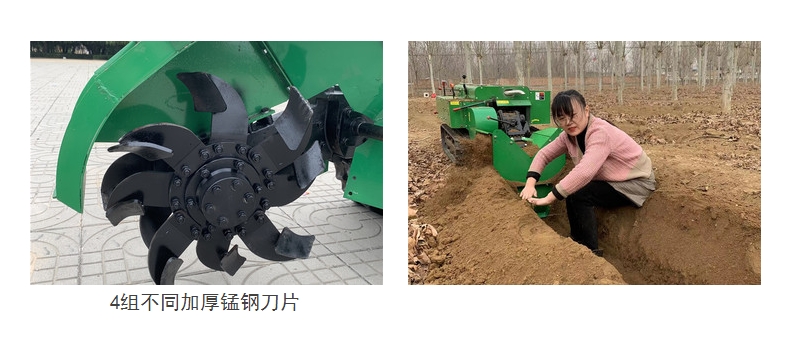 适合各种土质:冻土、硬土、粘土、黑土地,山地,软土均可使用. 多功能履带式开沟施肥机可以实现大型机械无法进入的果园、小块土地、大棚、茶园、丘陵、山地等不同的地形和土质进行作业。