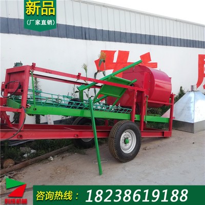 8000系列花生摘果机是2018新款机器,比上款增大了轴承加快了动力输出,将带果花生秧从喂料口喂入后,固定在主轴上的横向螺旋输送搅龙带动下使带果花生秧处于离心旋转状态,在摘果机的阻拦下,将花生从花生秧上分离下来,摘下果的花生秧在衡向螺旋输送搅龙旋转带动下被输送到排料盘去。分离下的花生果及破碎的茎、叶、土杂经栏条隙落进机具的振动筛上,经振动棒晃。土杂被清除出去,花生果及破碎的茎、叶被传递到风选装置下经两次,风选,干净的花生从震动筛出口处留出,完成花生摘果清洗作业。