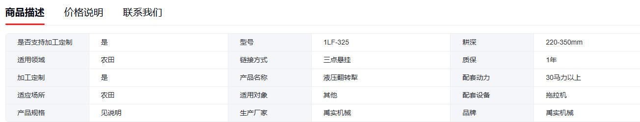 拖拉机悬挂 翻转犁 土地深翻 1LF-325 支持定制 禹实机械 1台