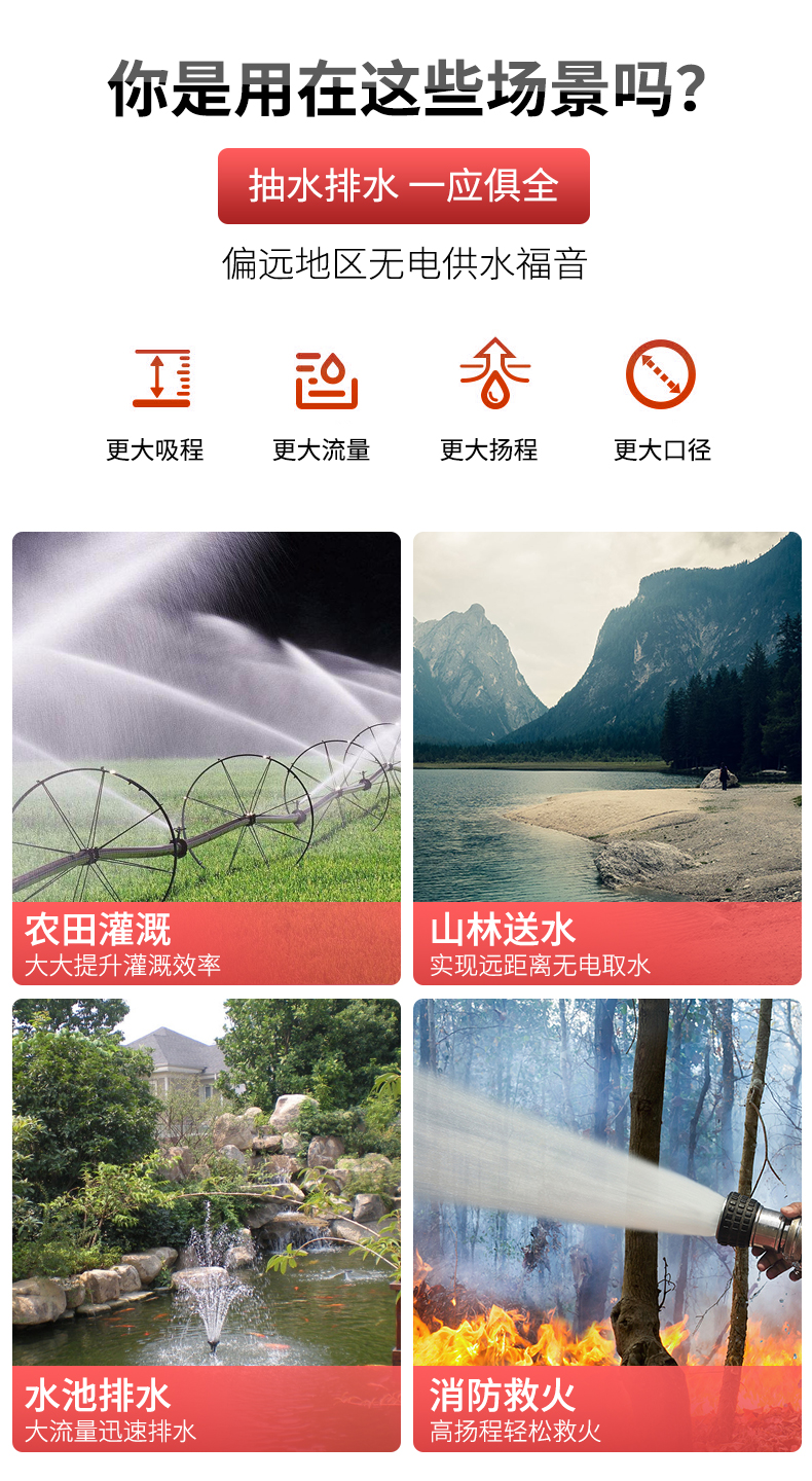 3、主要用于农田排灌,农场的给、排水;也可以用于建筑工地,遂道,小型水库,家庭水池的给、排水!