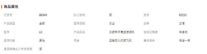 喷幅:3-4m最大起飞重量:>12kg飞控系统:微克/极翼