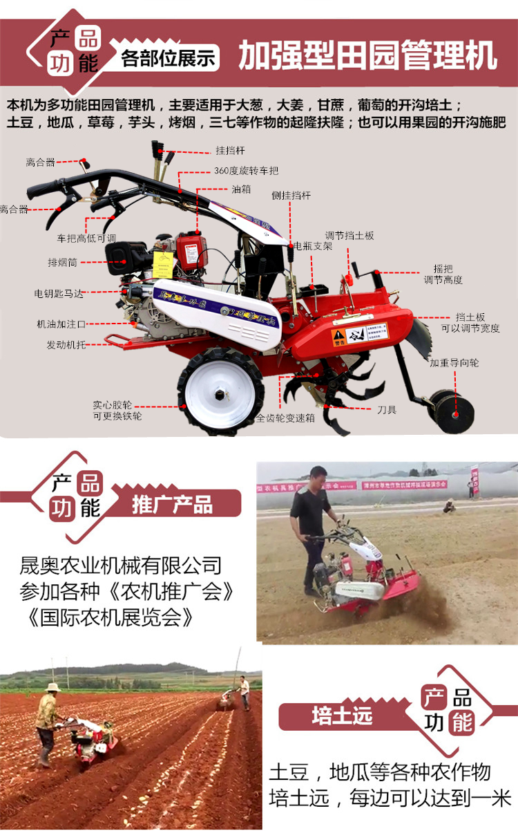 加强多功能四驱开沟培土机除草田园管理机柴油微耕机起垄机旋耕机