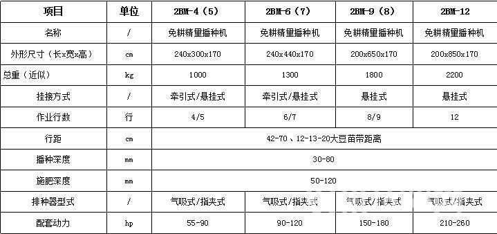 琦诚2BM系列悬挂精量免耕播种机技术参数: