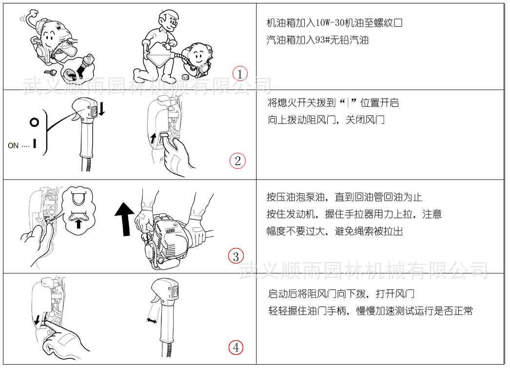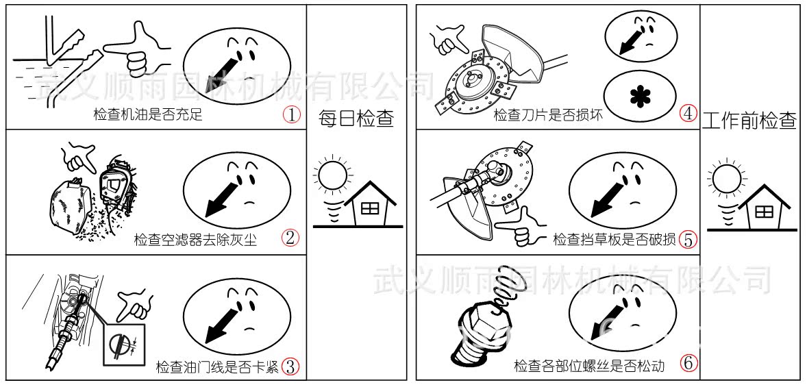 3.工作前检查油门拉线于化油器位置是否稳牢。