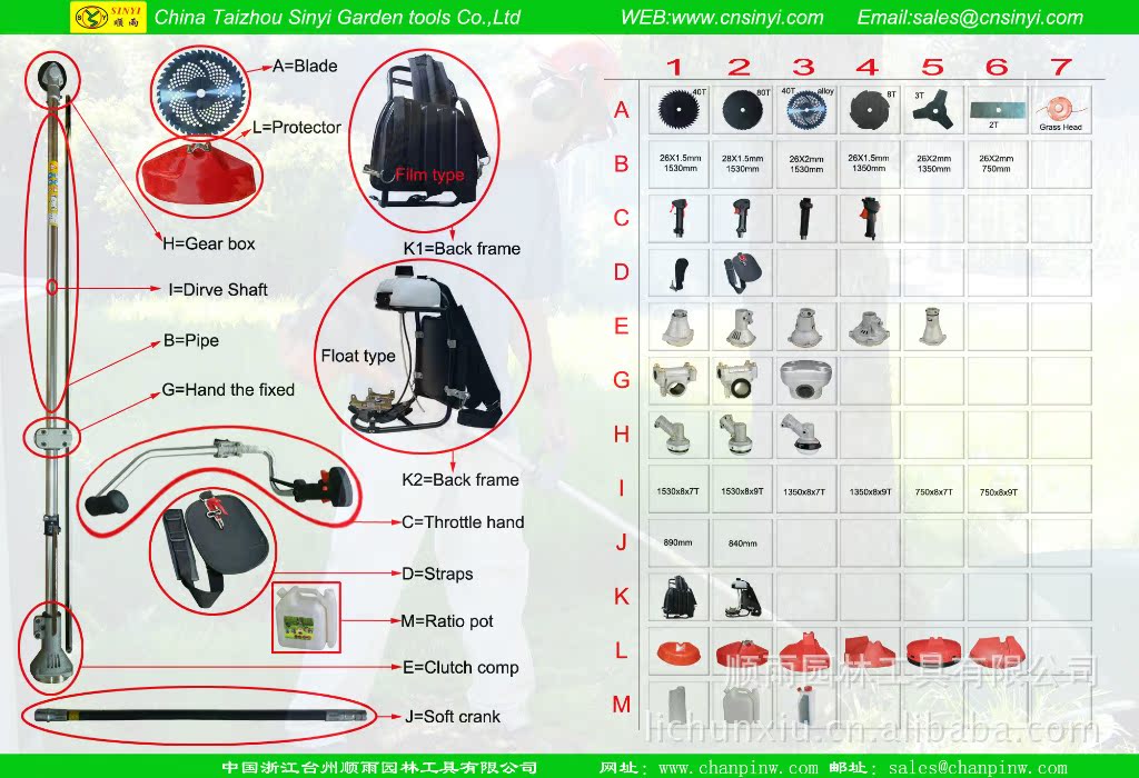 四冲程侧挂式割草机(割灌机)SY-CG139主要技术参数: