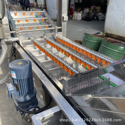 采用SUS304不锈钢制作,符合国家食品出口标准。流水线中各个单机可根据用户各自不同的加工特点量身定制,程度满足工艺要求;清洗机采用高压喷淋清洗,主要分为两段,段加入清洗剂喷淋的去油污段,第二段为清洗净洗段。此款清洗能力大、洗净率高,经过旋翻至振动拨料上机后输送到软包装风干机上进行吹干,即可贴标装箱。