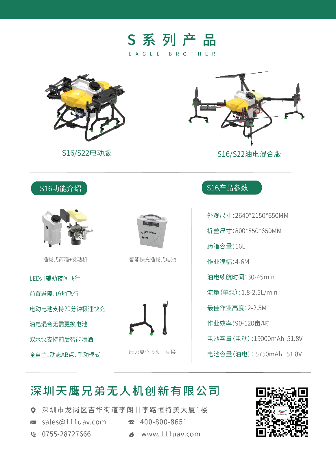 天鹰兄弟S16TY-S16多旋翼电动/油电混合植保无人机(电议)