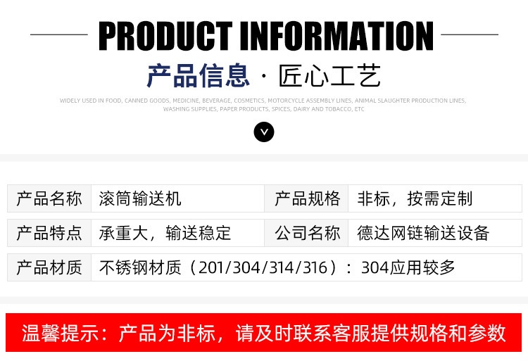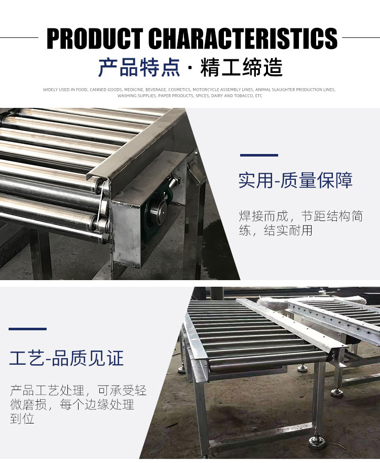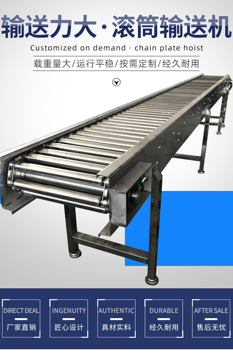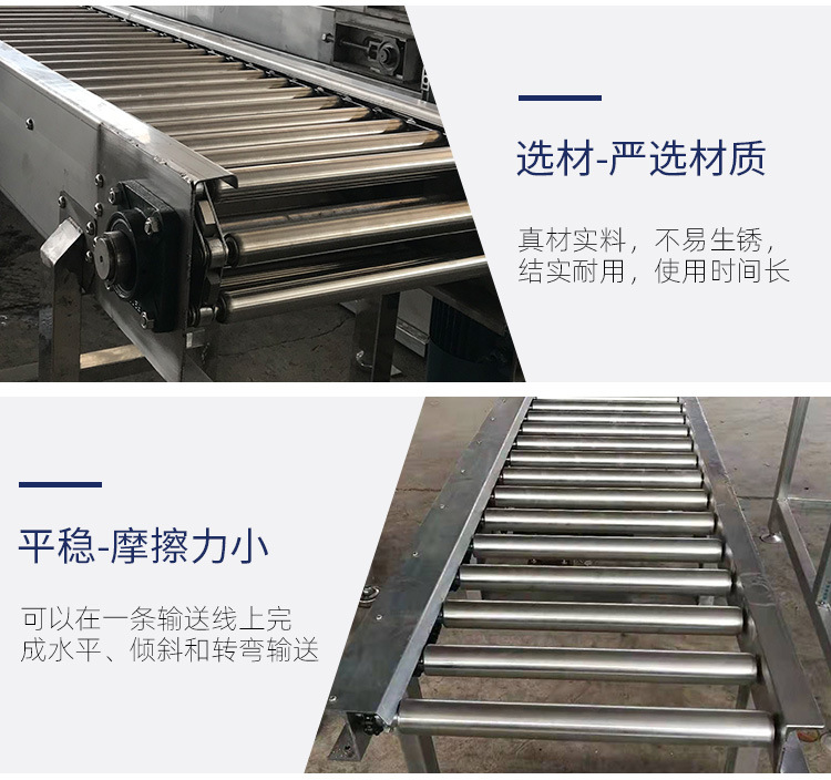 动力滚筒输送机 物流分拣流水线托辊卸货滚轮送料架 不锈钢传送带