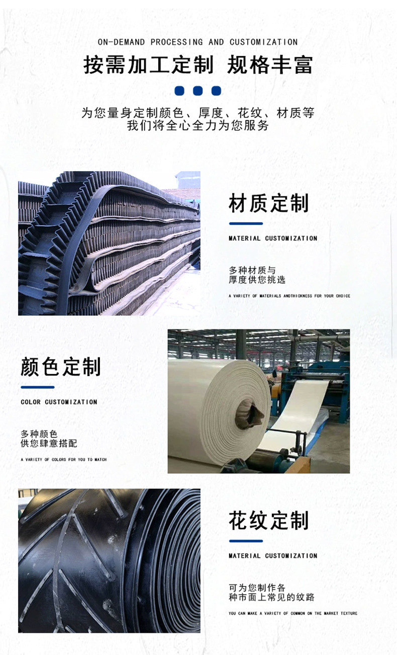 尼龙橡胶输送带加厚耐磨机械传送带防滑阻燃环形工业运输皮带挡边