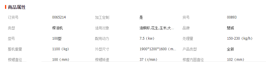 榨油机设备参数:
