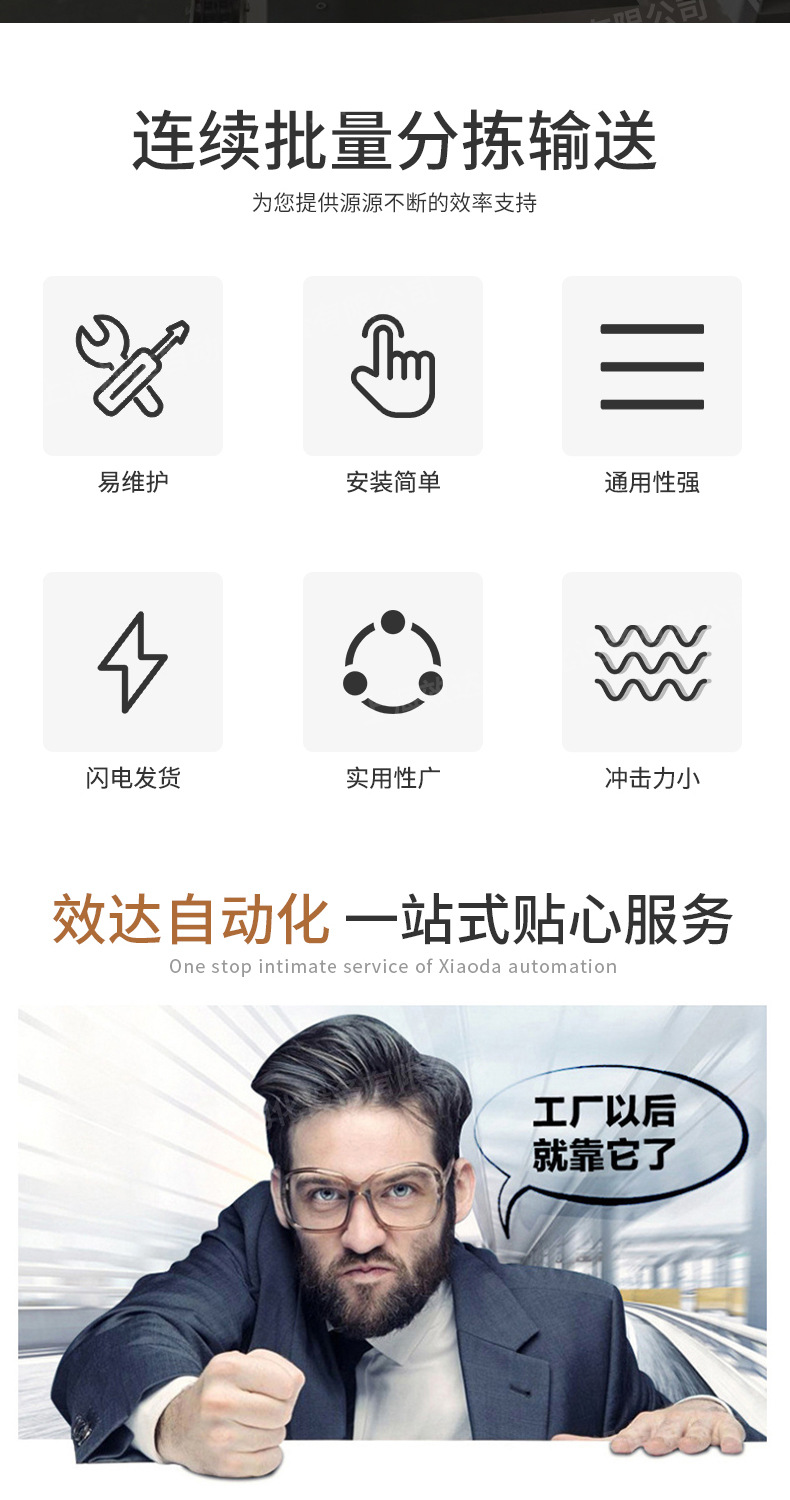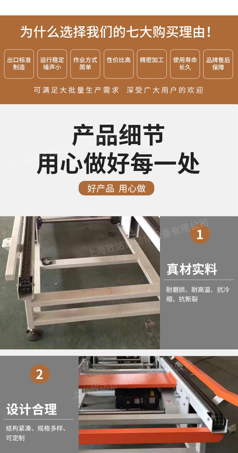 详细信息 订货号1 加工定制是 货号6 类型链板输送机 品牌效达 型号链条输送机 输送能力20(t/h) 功率0.75(KW) 输送距离1000(m) 外形尺寸1280(m) 重量1000(kg) 是否跨境出口专供货源否 本店所有产品均为定制产品,下单前请将产品要求发给客服,直接下单不发货 该价格不含运费不含税,仅供参考,实际价格及发货情况请咨询客服,与客服确认后再下单