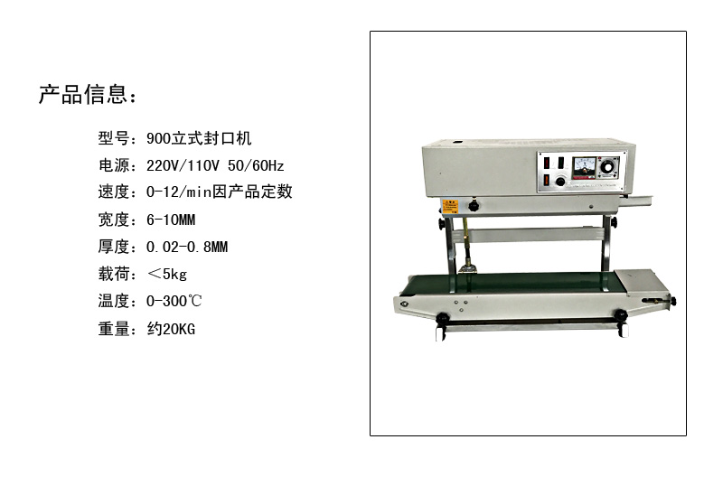 详细信息 订货号 加工定制 货号 类型 品牌 型号 功率 重量 外形尺寸 包装材料 包装类型 生产能力 自动化程度 适用对象 售后服务 电源 封口速度 封口宽度 薄膜厚度 耗用功率 输送载重 温控范围 印字个数 适用容器的最大尺寸 适用容器的最小尺寸 规格 是否跨境出口专供货源 商品描述