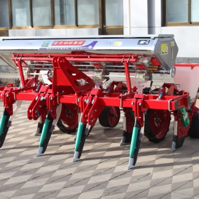 该机与拖拉机配套作业,主要用于未耕或已耕地单粒精播玉米,可条施晶粒状化肥,一次完成开沟施肥、开种沟、播种、覆土、镇压等工序。