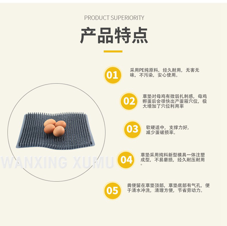 新式的,自动,人工蛋箱都可以使用这款仿真塑料草垫,可漏粪可清洗保护鸡蛋。