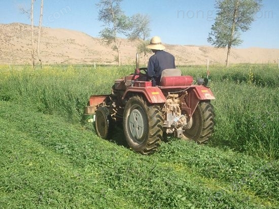 TF140型双圆盘式割草机是牧草收割、果园管理耐用高效的一种机械,采用回转式切割器,经过优化设计具有以下优点: 一、该机具由小四轮拖拉机前悬挂作业,主要有挂接、升降、传动、切割等机构组成,设计简单,结构紧凑,适应性强,成本低; 二、本机具的升降由拖拉机的液压系统控制,将机器的油缸油管与拖拉机液压系统连接好,操纵液压升降手柄就可以完成机具的升降; 三、动力由拖拉机飞轮传递,机具皮带布置在两个齿轮箱中间,两个皮带轮处在同一平面内,结构更紧凑; 四、带传动型割草机安装简单、效率高、操作方便、配套范围更广。 技术参数: 工作速度:6-10km/h 生 产 率:5-12亩/小时