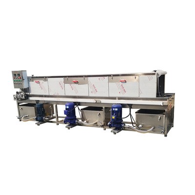 周转筐清洗机、托盘清洗机、洗筐机机架采用优质食品级304不锈钢制作,本机首先采用高压气泡热水水浴清洗,清洗能力大,除油污效果好,洗净率高,经过输送网带,传送至高压喷淋清洗经自来水喷淋清洗后自动输出。洗筐机、洗箱机、周转筐、洗筐设备是诸城鼎康机械节能产品的又一力作,合理的水路设计,达到节水高效,输送链条速度可调满足不同条件清洗要求;摆动喷嘴清洗系统,获得好的清洗效果.