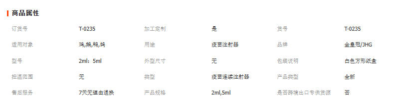金皇冠JHG兽用注射器 可插瓶疫苗连续注射器 猪鸡鸭疫苗器
