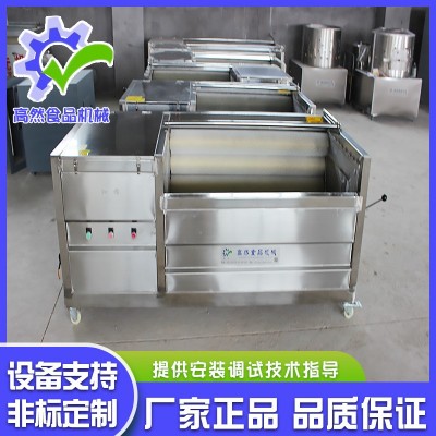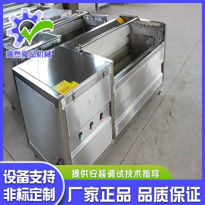毛刷清洗脱皮机主要用于胡萝卜、马铃薯、红薯、苹果、梨、红果等根茎类果蔬的清洗以及猪头猪蹄去毛,鱼类去鳞。可在我厂研制的速冻薯条加工流水线上使用,也可单独使用。