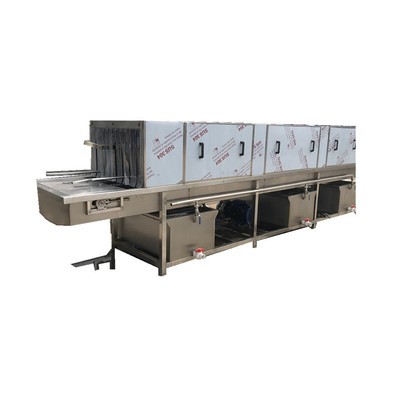 1.本设备由我公司自主研发制造的新式洗筐机,面向市场推出初期就得到了新老客户的一致好评。本产品以良好的性能及更高的效率远销海外十几个国家。成为食品加工制造链接中不可缺少的新助手。隧道式工业清洗机主要用于屠宰、肉类、水产、蔬果、饮料、酿造等食品加工厂或食品物流中心、配送中心等,也适用于各种周转筐、盘、箱、托盘、等容器具的清洗和消毒。可节省用水量达70%,可比古老的人工清洗方法能节省人力7-8人。
