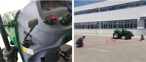 产品配置:常发 495 自吸发动机、常发前桥、双作用离合器、8+8 档、固定轮距、双缸强压提升器、双组液压输出、PTO-540/760-8-φ-38、简易车身安全架、遮阳棚、可调式固定拖挂、1 类悬挂、多工况、定位模块、前轮 6.5-16平花、后轮11.2-24平花、前配重6块120KG、充气刹。