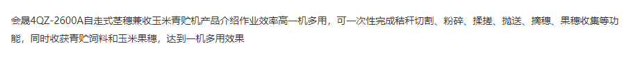 | 功能 | 摘穗、剥皮、秸秆切碎青贮 |