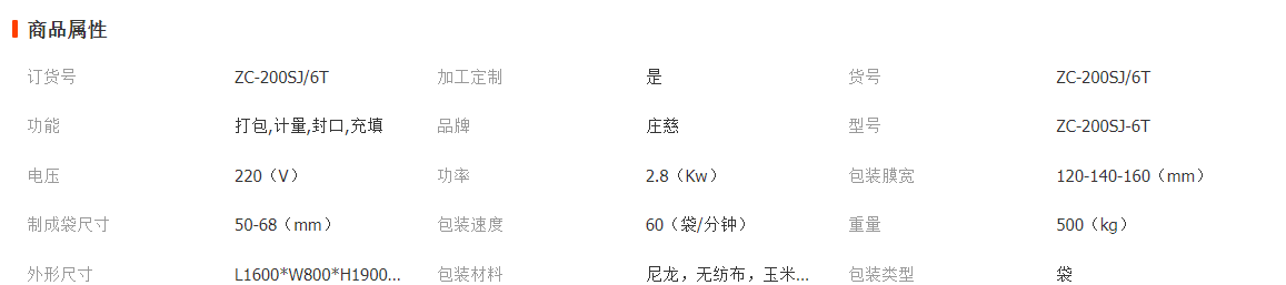 7、包装能力:ZC-200SJ/6T 2400-3600包/小时;
