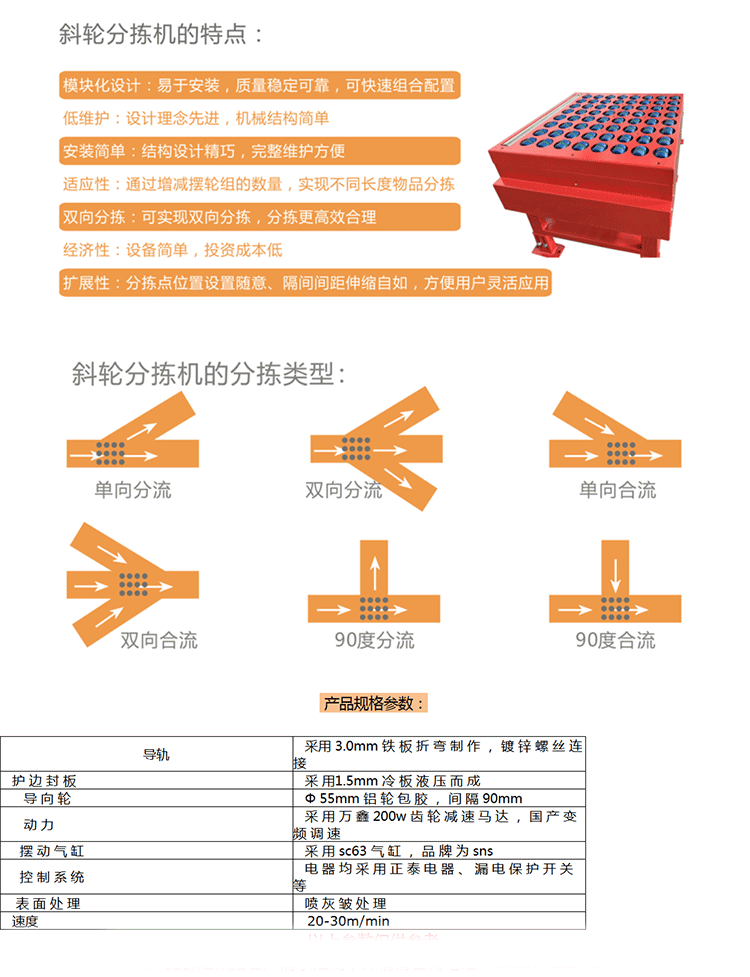 小时2000~4000件。主要通过气缸,丝杆等驱动,将斜导轮顶升或改变斜导轮原有的直线运动