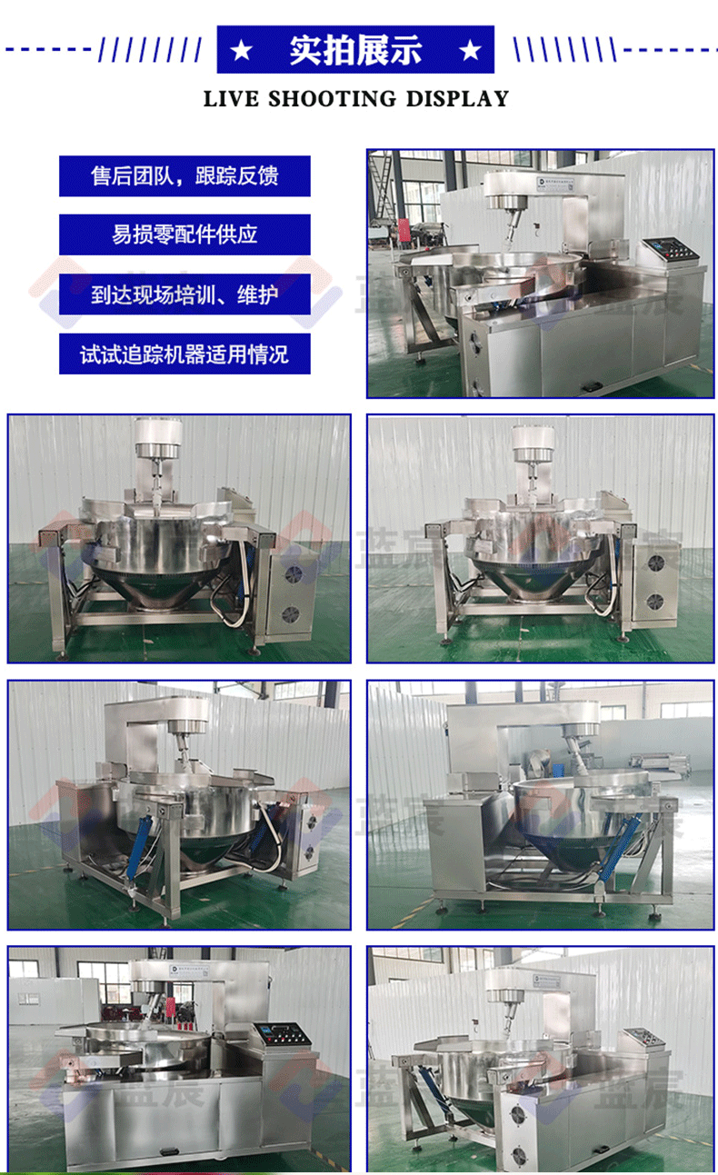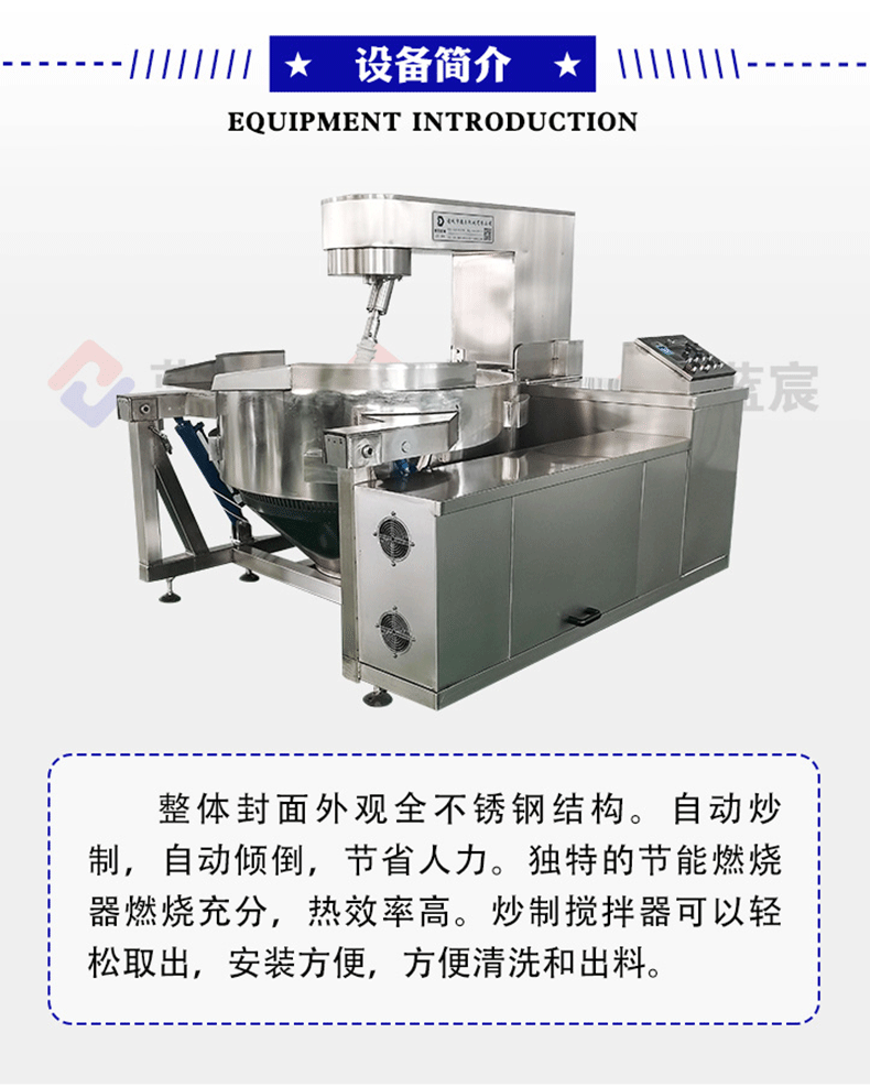 蓝宸行星炒锅主要由锅体、架体、搅拌系统、加热系统、调速传动装置、搅拌轴、锅体翻转系统等组成,