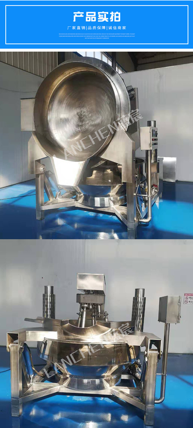 1、锅体:本产品锅体为一次冲压成型的半球体不锈钢锅体,整体圆度误差小,搅拌器与锅体贴合度高,避免糊锅现象出现。