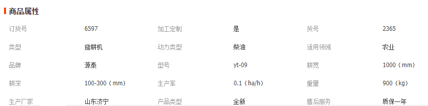 旋耕深度:10-30厘米 旋耕宽度:100厘米(可定做)