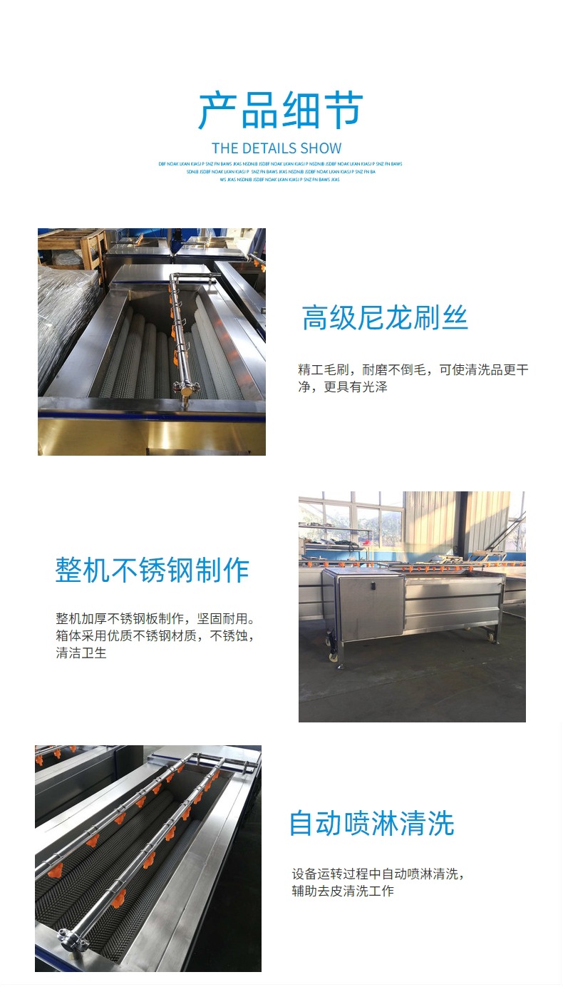 毛辊清洗机为毛辊式,毛辊连续工作使加工效率提高,且清洗去皮效果非常好,全国各地均有用户在使用。毛辊为尼龙材质,使用寿命长,不易掉毛。