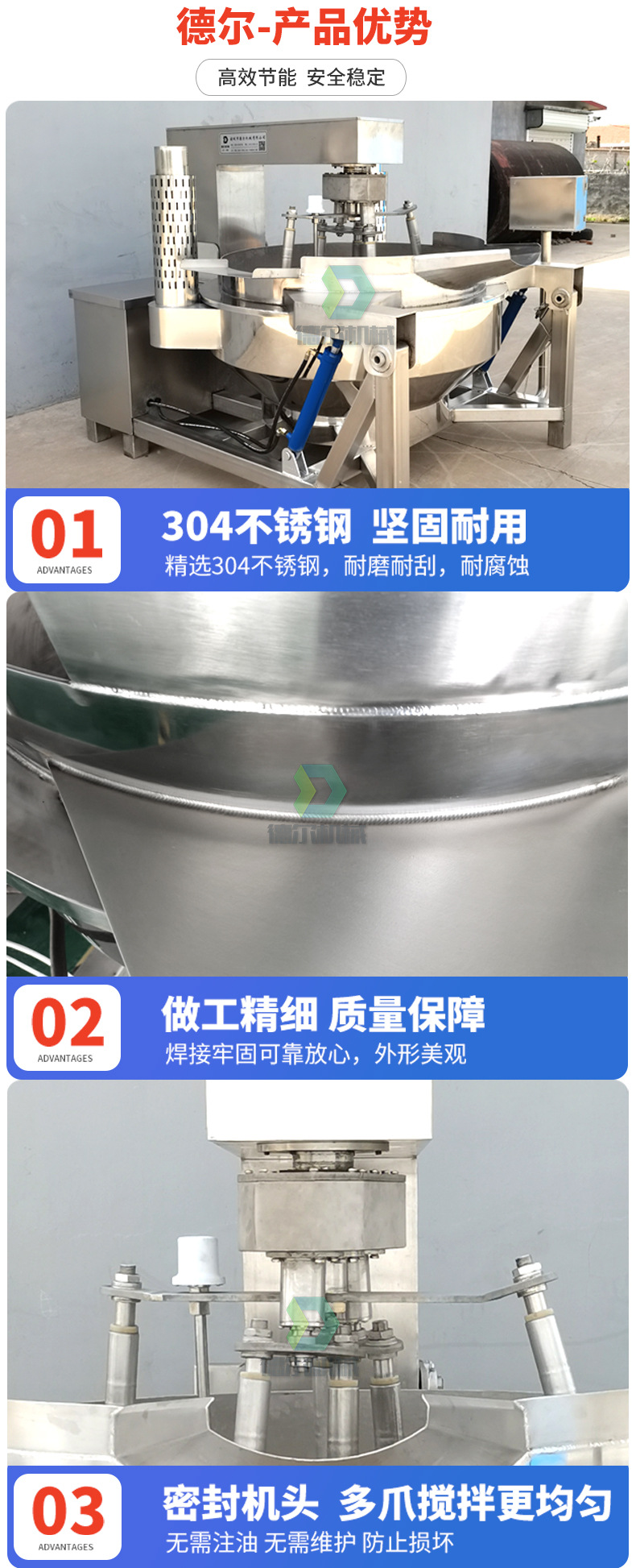 多爪行星搅拌炒锅全自动酱料火锅底料炒料机大型商用燃气加热炒锅