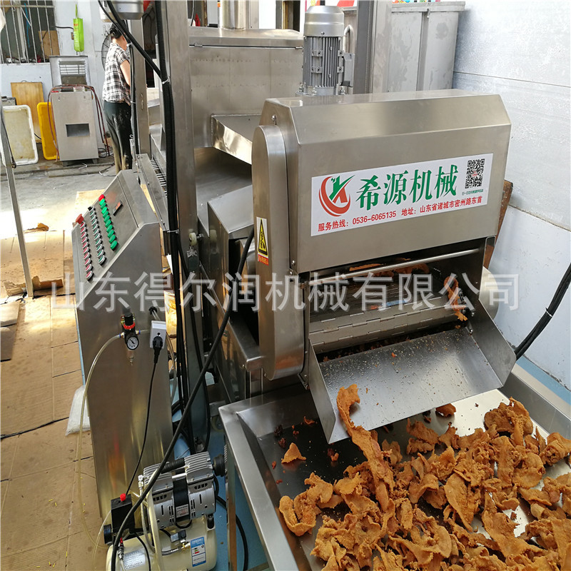 全自动家用型鲜切土豆片油炸油炸生产线不锈钢加工制造,油炸温度自控,可根据炸制产品不同设置温度,炸制时间可调根据产品炸制要求设置时间;独特的产品输送系统、排渣系统、油循环系统、排烟系统、电控系统等组成。采用网带输送产品变频或无级调速。广泛应用于肉制品,肉块、炸鸡翅、鸡米花、水产、蔬菜、面食等油炸食品 加工。