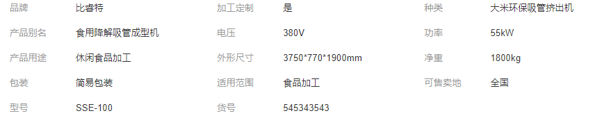 在快餐店和饮品店里面,塑料吸管是店家 常用的,这也是一种塑料污染,为了解决这个状况,社会上不少的人开始发散自己的思维,创造新的东西去替代塑料吸管,并且从星巴克、麦当劳等连锁快餐店去试点实行,可食用的吸管成为研发的一个热点。要替代塑料吸管的可食用吸管要有以下几个特征,不易泡软、不易窜味、价格低廉。根据这一市场特征济南比睿特机械设备有限公司研究开发了可食用大米吸管生产设备