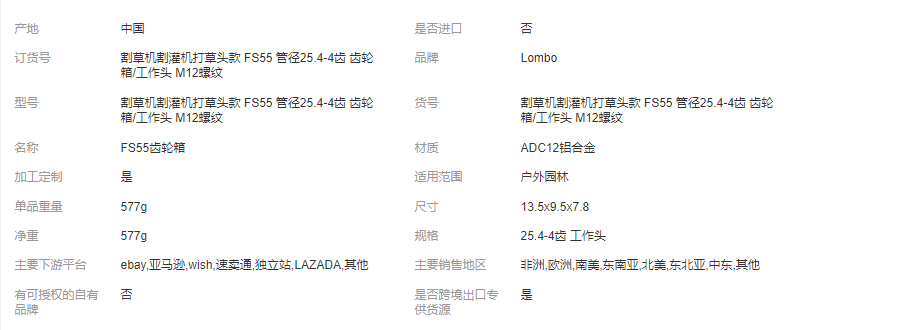 割草机割灌机打草头款 FS55 管径25.4-4齿 齿轮箱/工作头 M12螺纹