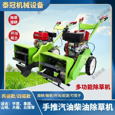 大棚手推式170汽油除草机两/四驱小型开沟旋耕锄草松土田园管理机