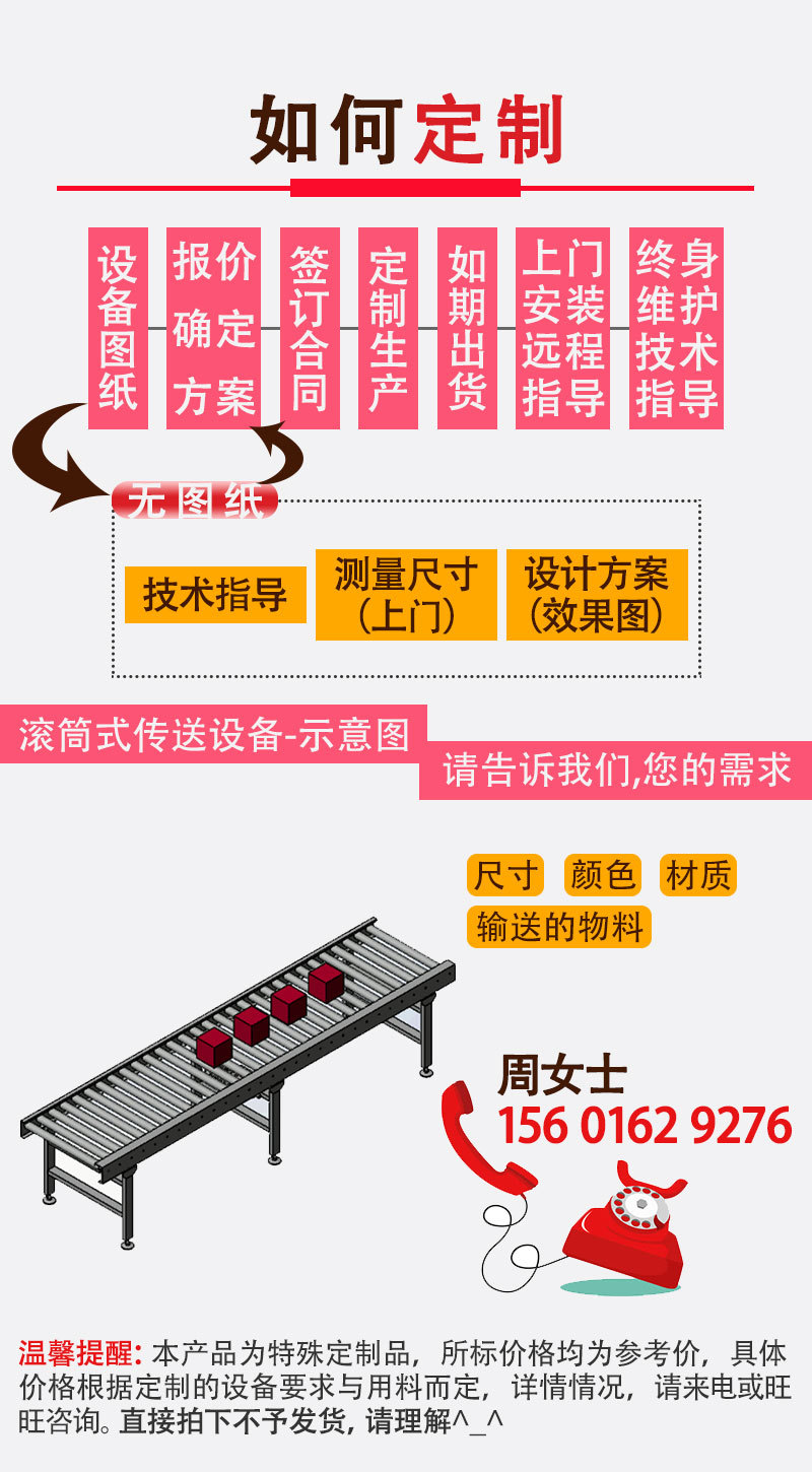 详细信息 订货号带式输送机 加工定制是 货号Gc202108043-930 类型滚筒输送机 品牌上海罡宸 型号环形输送机 输送能力180(t/h) 功率100(KW) 输送距离100(m) 外形尺寸定制(m) 重量300(kg)