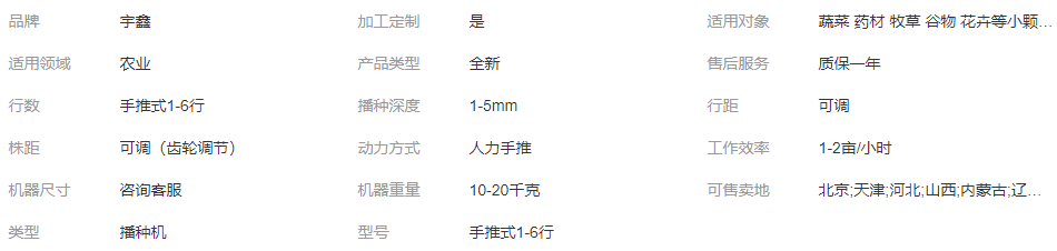 价格是多少?该机器的使用寿命是多久?效果如何?有其他颜色可选吗?重量是多少?这款播种机支持定制播种轮吗?这款播种机的株距可以调整多少?