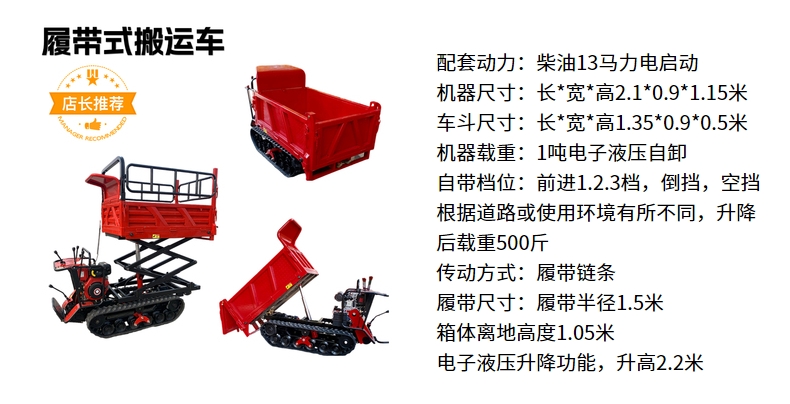 柴油13马力履带式运输车 自卸车 升降车 打药车