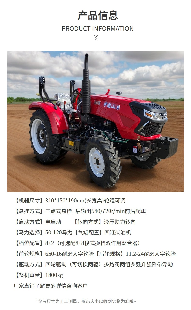大马力四驱轮式拖拉机 柴油动力大棚王